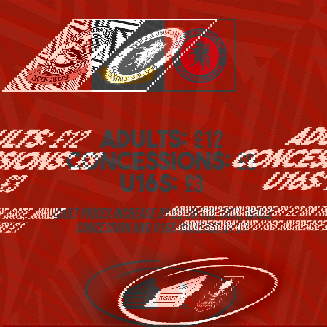 Tickets for the trophy clash at Garden Walk will be available both online and from the turnstiles on the day of the game at the following prices: