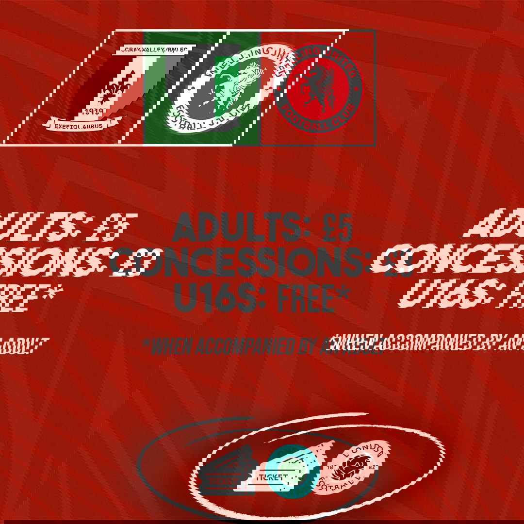 Tickets will only be available at the turnstiles for cash or card on the evening of the game at the following prices.