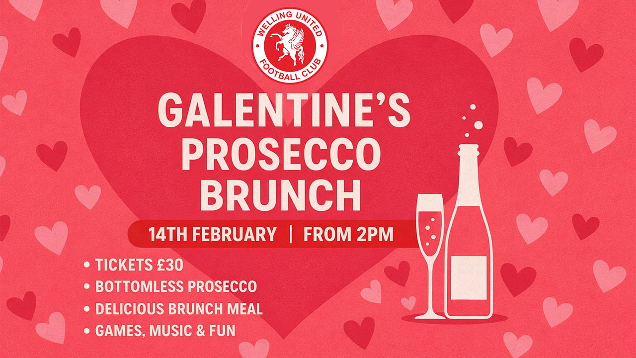 This Valentine’s Day, Welling United are inviting supporters to swap the usual plans for something a little different as we host a special Galentine’s Prosecco Brunch celebration at Park View Road.