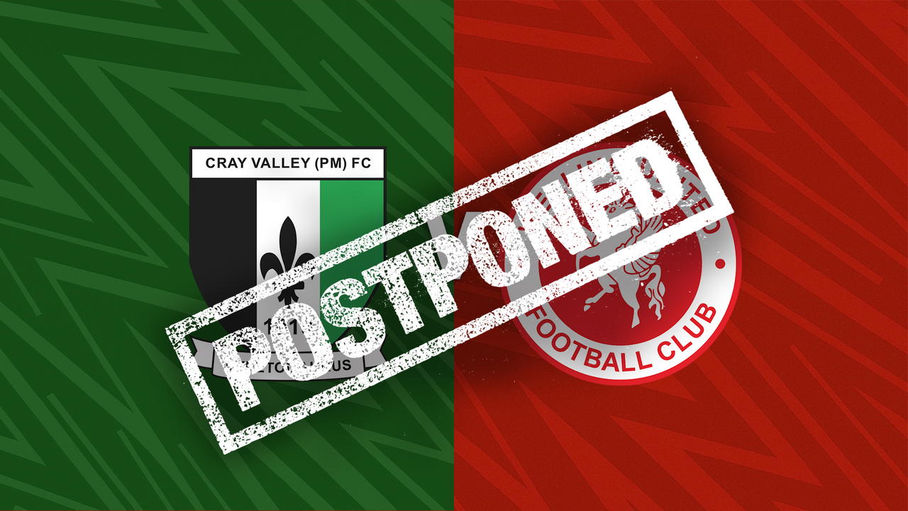 Welling United’s Isthmian League Premier Division fixture against Cray Valley (PM) on Saturday, January 3rd has been postponed due to a frozen pitch.